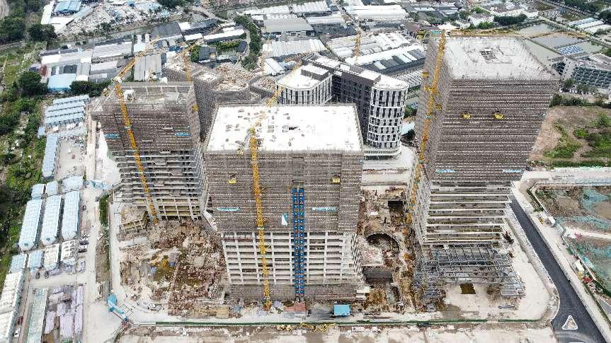 壹健康集團綠瘦科技園項目近日迎來新進展——2023年1月15日,壹健康集團超級總部最后一棟120米高的超高層A塔隆重封頂,至此,該項目全部順利封頂。