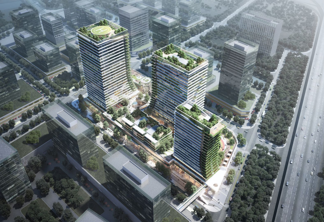 科技園項目位于廣州粵港澳大灣區醫藥健康綜合試驗區,廣州市荔灣區海龍國際科創園核心位置,距離現壹健康荔灣園區直線距離1.6公里。2021年10月27日,集團按“新型科技創新功能”定位,投入20億正式興建極具科技感的壹健康集團超級總部,預計2024年6月底可完成竣工驗收,下半年可以進駐。 隨著大健康行業的快速發展,產業從粗放式發展模式向精細化發展轉變,移動醫療、大數據、物聯網已經開始滲透到產業的各個環節。自建科技園是壹健康集團為實現產業融合的前瞻性舉措,是壹健康集團向大健康產業集群聚合的一大里程碑,助力集團邁向百億規模。 科技園俯瞰效果圖 據科技園項目負責人介紹,科技園將滿足企業總部辦公、研發設計、創新孵化、展覽展示、商務生活等全方位的發展需求,包括兩棟超高層甲級寫字樓A塔及B塔,一棟高層宿舍C塔,以及兩層裙樓共2.2萬平方米的產業服務配套設施,可容納接近一萬人辦公。 寫字樓大堂效果圖 舒適和諧的工作環境是保障員工身心健康的重要一環。在設計上,科技園結合了綠色森林城市的設計理念,為在壹健康工作的奮斗者創造了更人性化、生態化的辦公環境——良好的視野,郁郁蔥蔥的綠色植物,寬敞明亮的空間,多樣化的公共休閑區域讓員工有了放松休息的去處,激發更多創意靈感和工作動力。 辦公樓公共休閑區域配套設施效果圖 戶外景觀效果圖